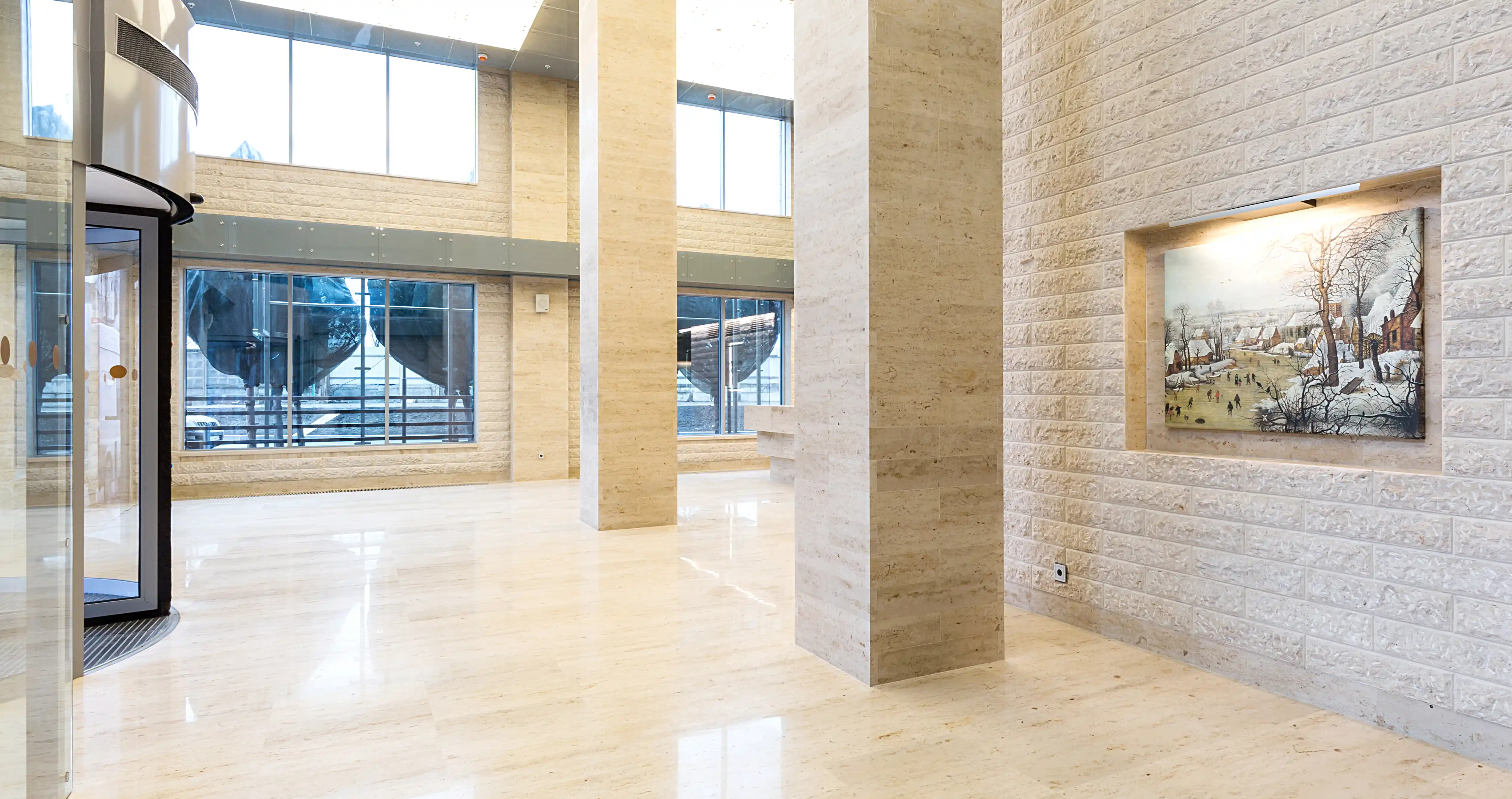 В летнее время глубоко расположенные витражные конструкции в теле здания будут защищены от прямого попадания солнца и перегрева. В зимнее время, когда солнце проходит низко над горизонтом, расположенные за витражами помещения будут получать достаточное количество света.