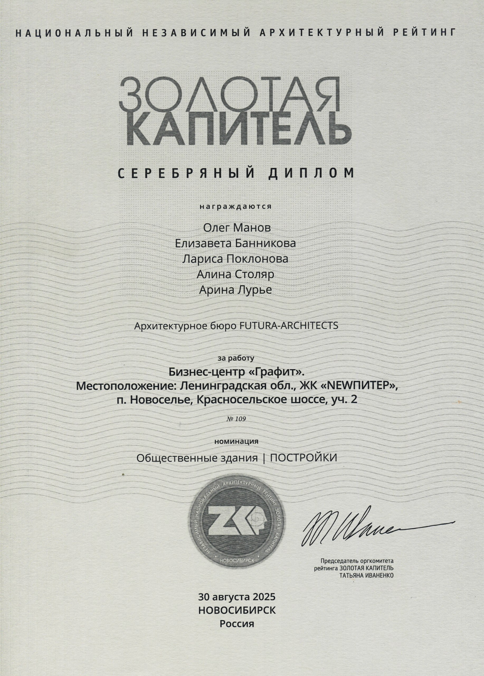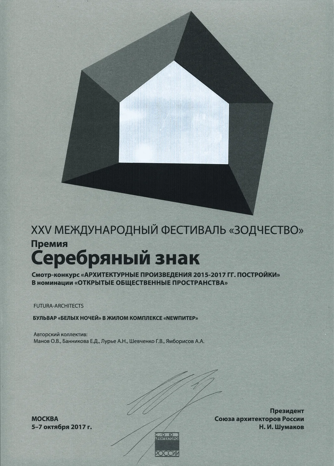 Архитекторы: Бурмистрова В., Эдгар В., Шевченко Г., Аксенова Ю., Зуева А.