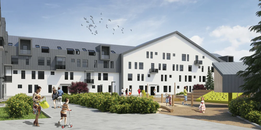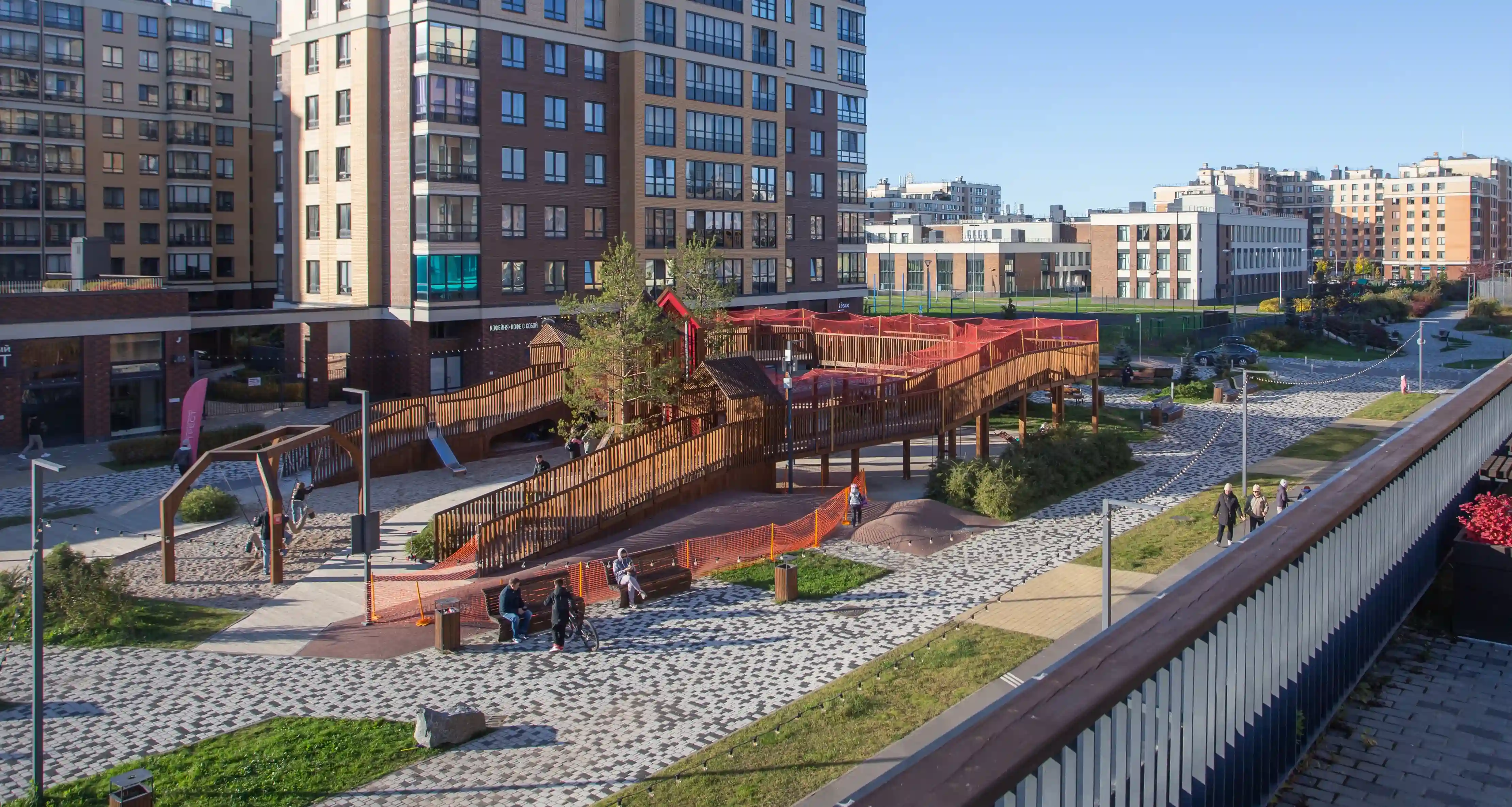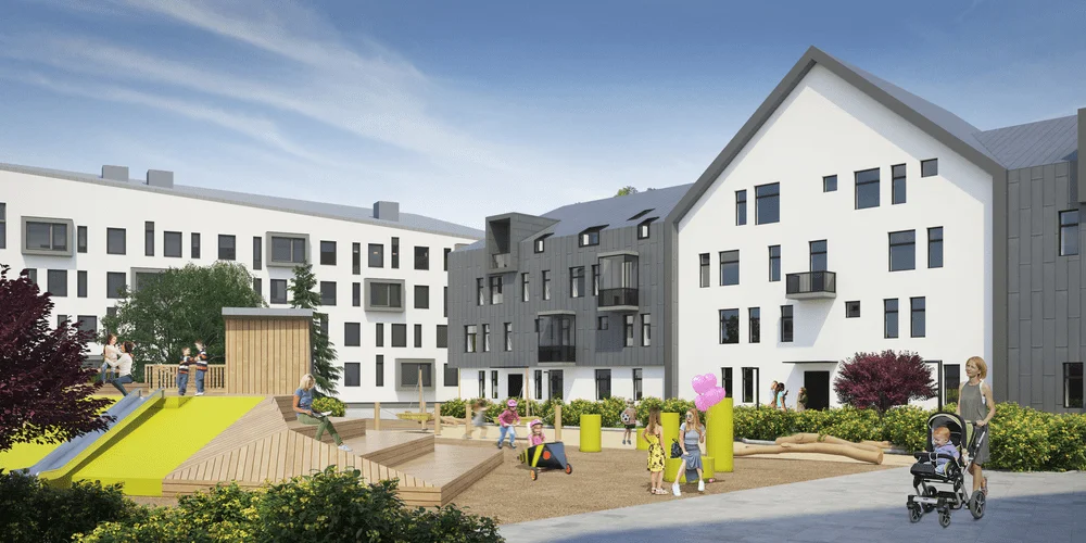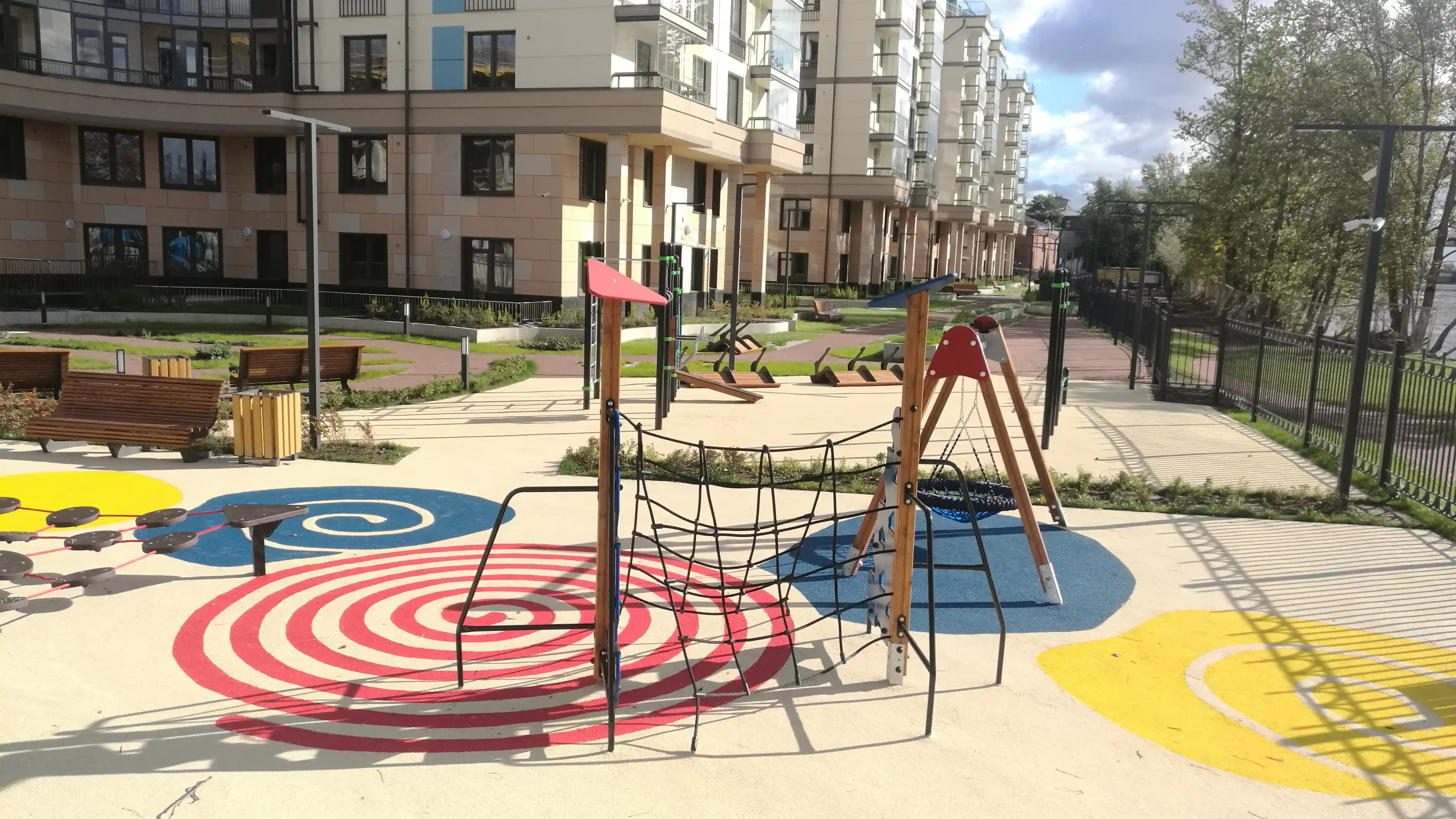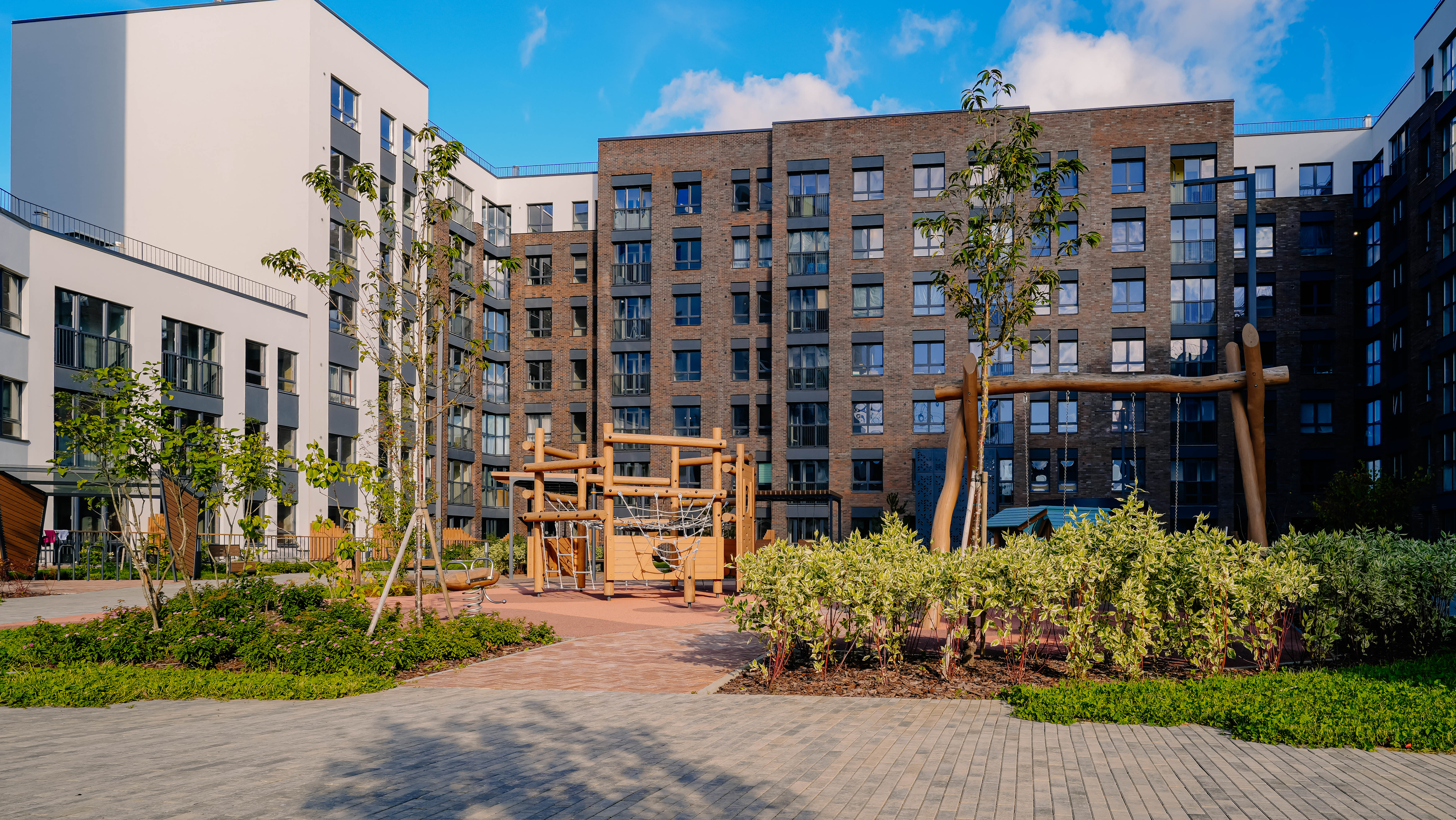 Каждый внутренний двор задуман как уникальное игровое пространство, посвященное одному из персонажей скандинавских сказок и выполненное в определенной стилистике и цветовой гамме. Каждая площадка имеет свое название и уникальна: площадка «Снежная королева», «Карлсон», «Рыцарский замок», «Корабль Викингов», «Лапландия», «Муммий Тролли», «Пеппи длинный чулок». Центральными элементами площадок являются игровые комплексы, которые похожи на скульптуры.
