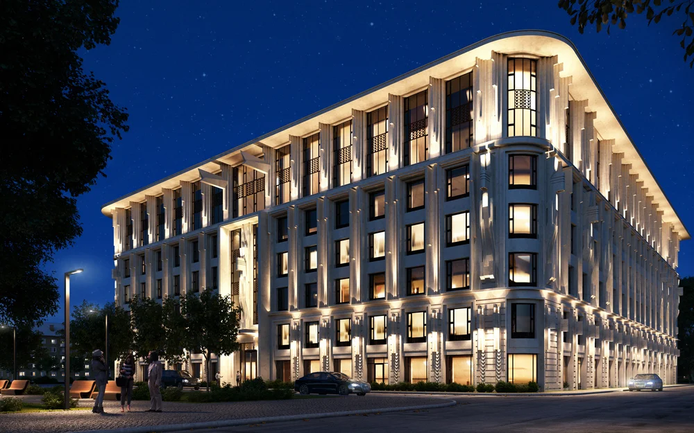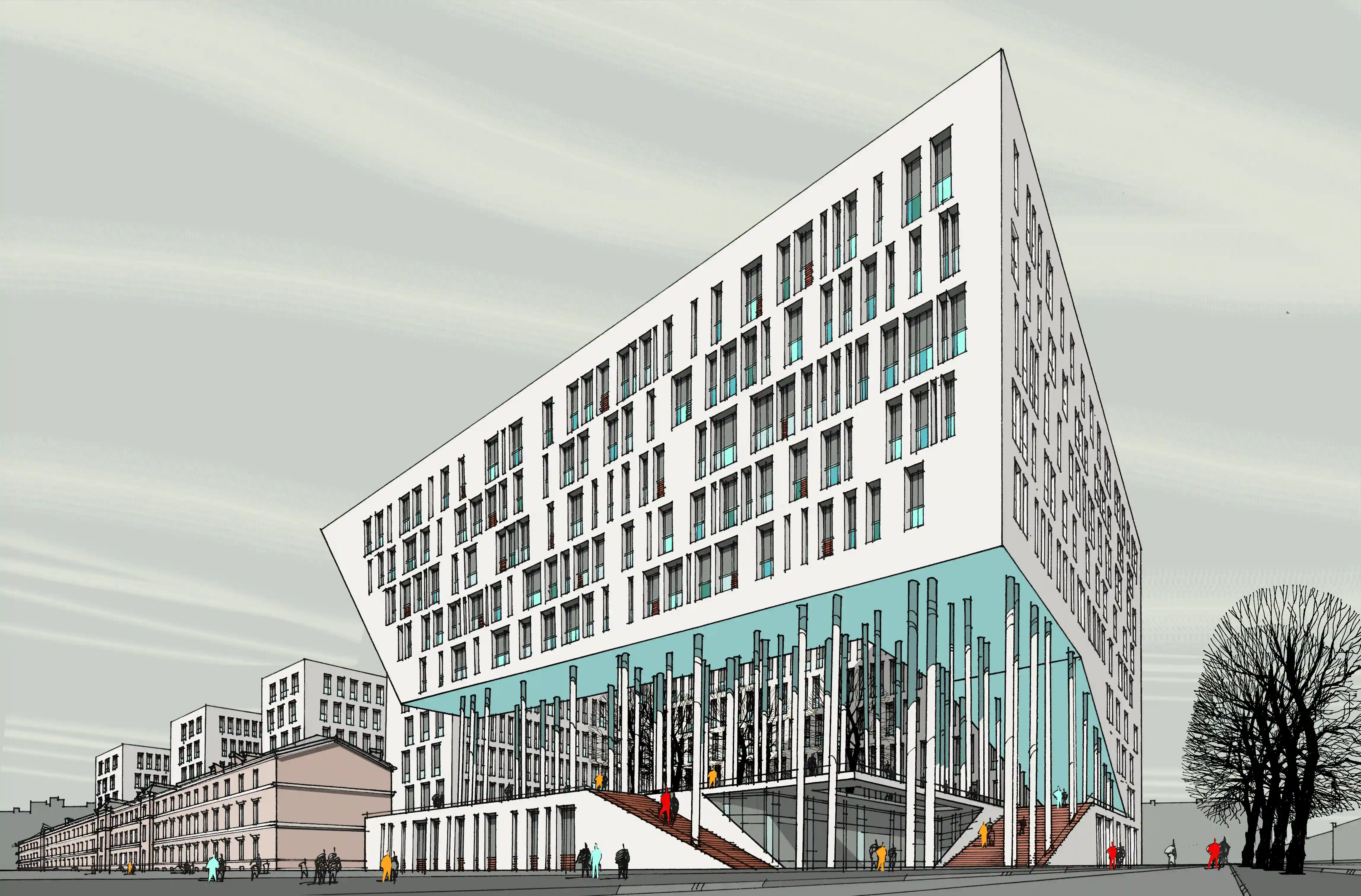 Главная задача проекта – добиться выразительного фасадного решения, при общей лаконичности и простоте объёмно-планировочных решений, для наиболее эффектной интеграции здания в средовой контекст квартала.
