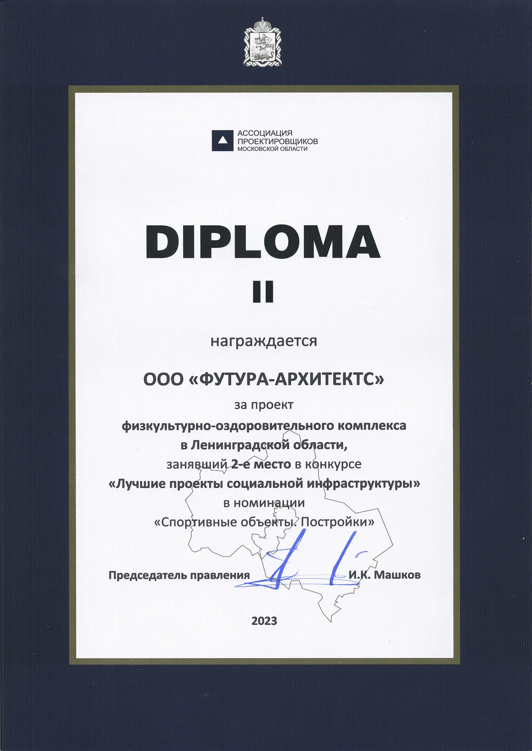 Награды: Диплом 2 место в конкурсе "Лучшие проекты социальной инфраструктуры" в номинации "Спортивные проекты. Постройки"