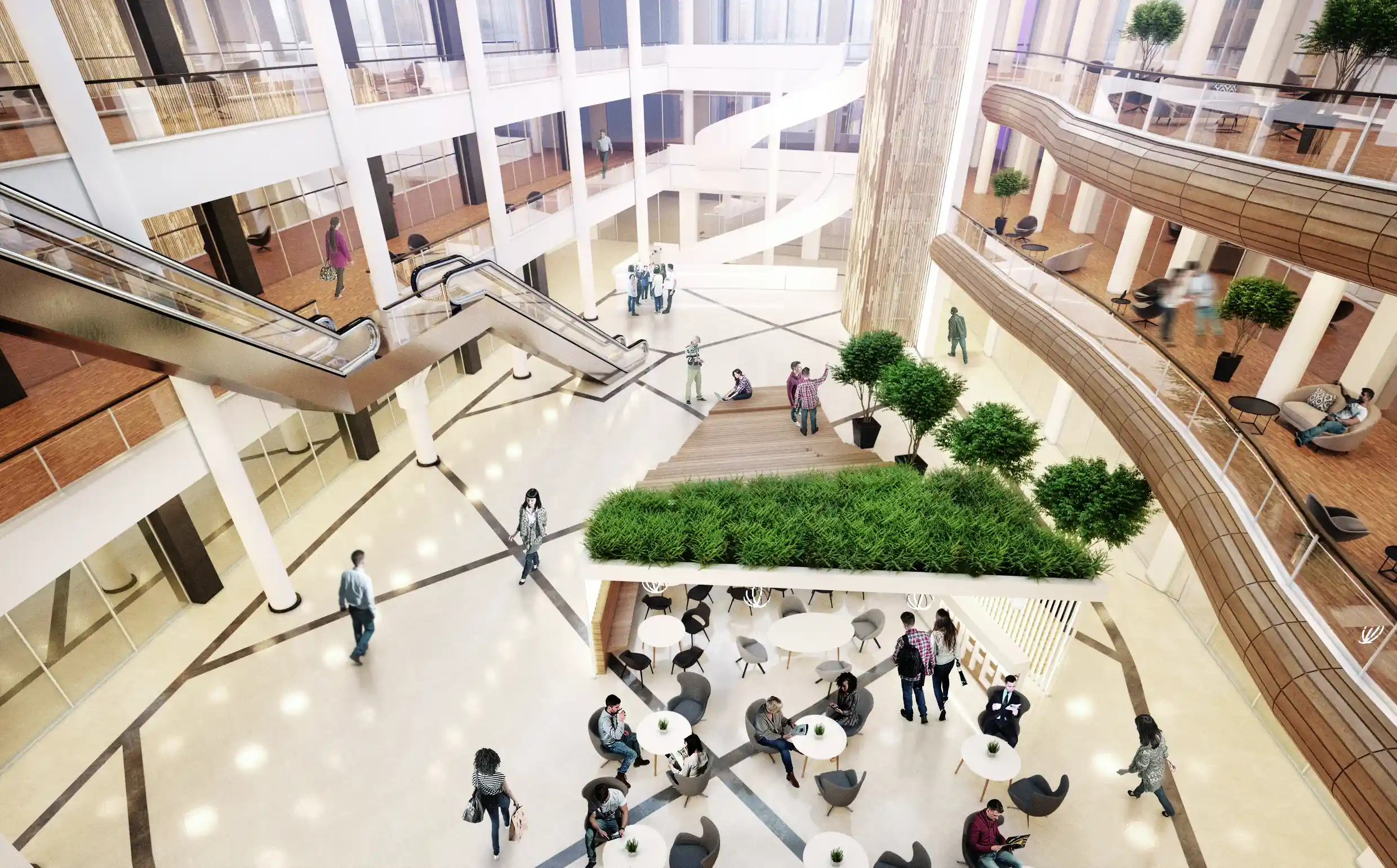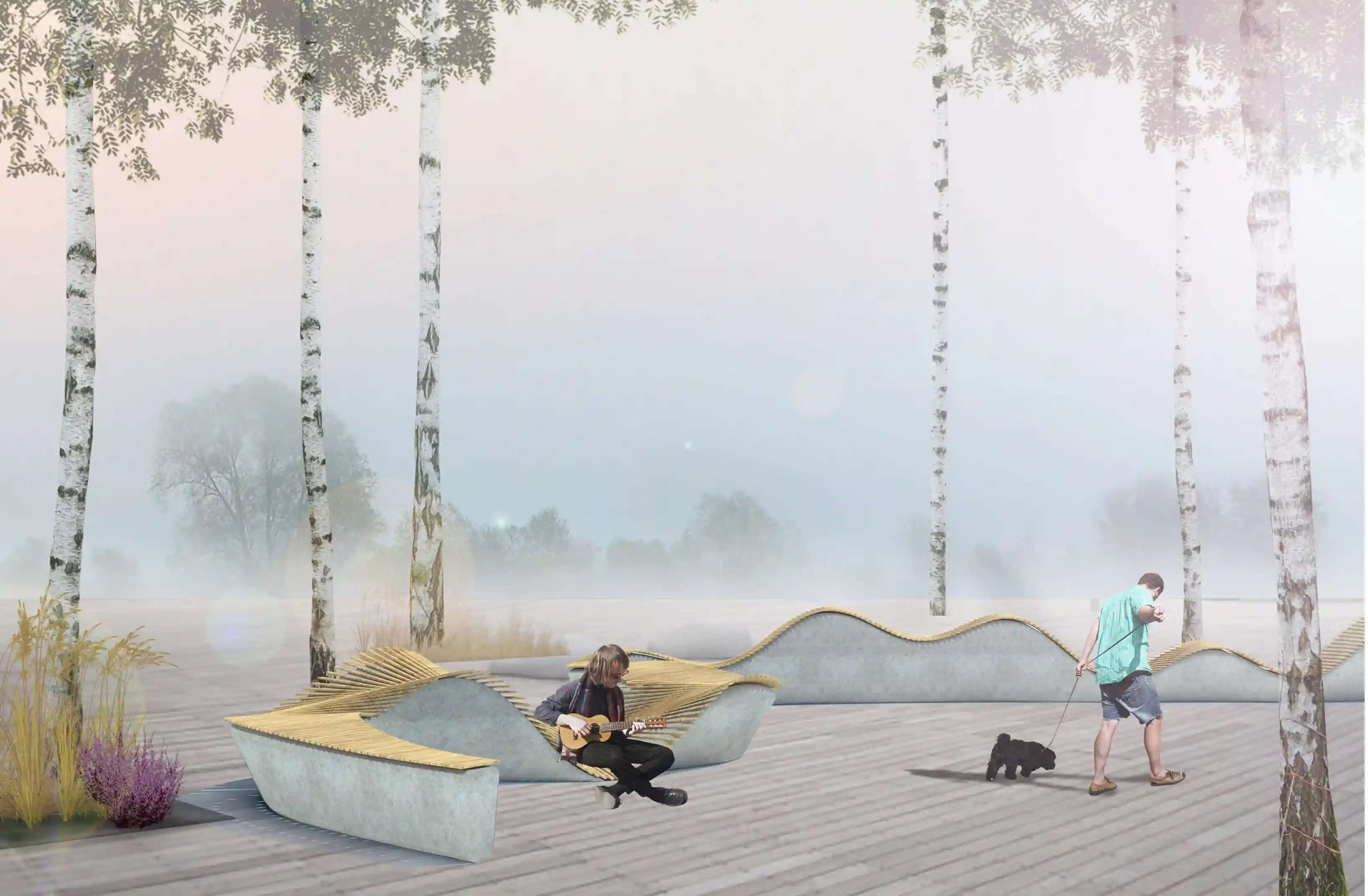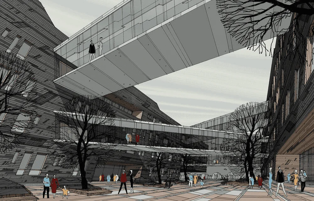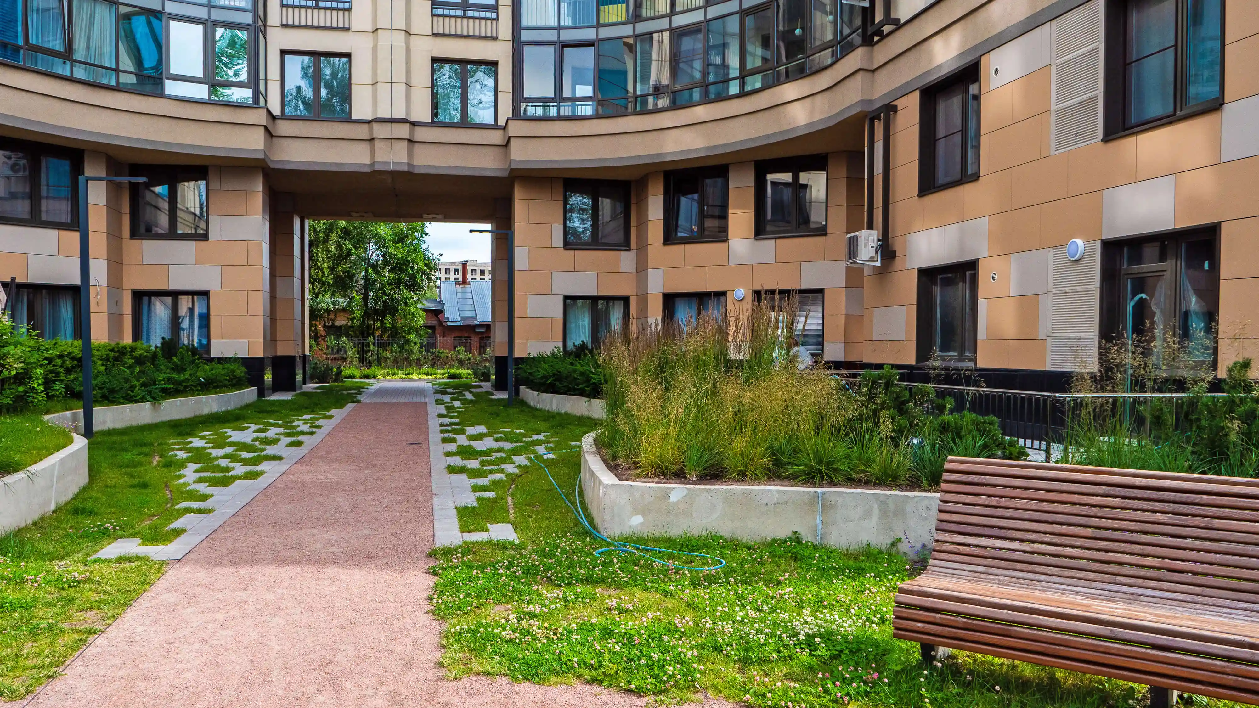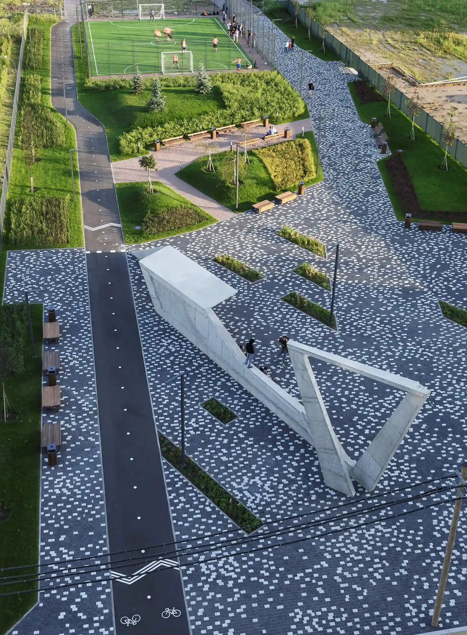 Проект включает ландшафтное озеленение, устройство променада, велодорожки, установку скамеек и беседок. Через весь квартал пройдет променад протяжённостью 340 м, который начнется спортивной площадкой и закончится зоной отдыха. Концепция предполагает движение по внутриквартальному пространству от одной точки притяжения к другой, таким образом, создав тематические прогулочные маршруты, а также позволит сбить монотонность движения и создать эффект природной среды. Основными точками притяжения запланированы центральная площадь, березовая.