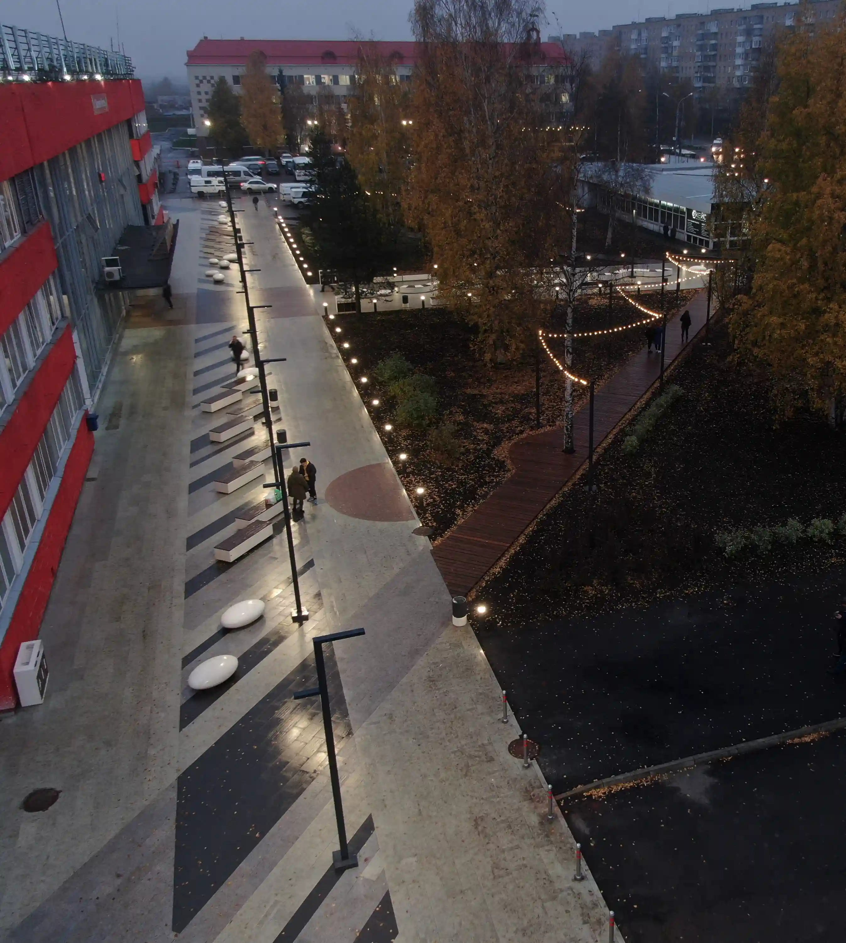 В рамках реализации проекта обустроен гранитный тротуар с гранитными бордюрами, установлено освещение и МАФы, организована детская площадка, высажены деревья и кустарники и др.
