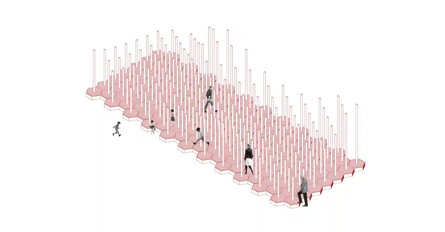 Серия состоит из 4 объектов, каждый из которых выполнен в разных материалах и интерпретирует лейтмотив Петергофа в современные формы. Связующим цветом всех объектов выбран алый, с целью привлечения людей с дальних расстояний.