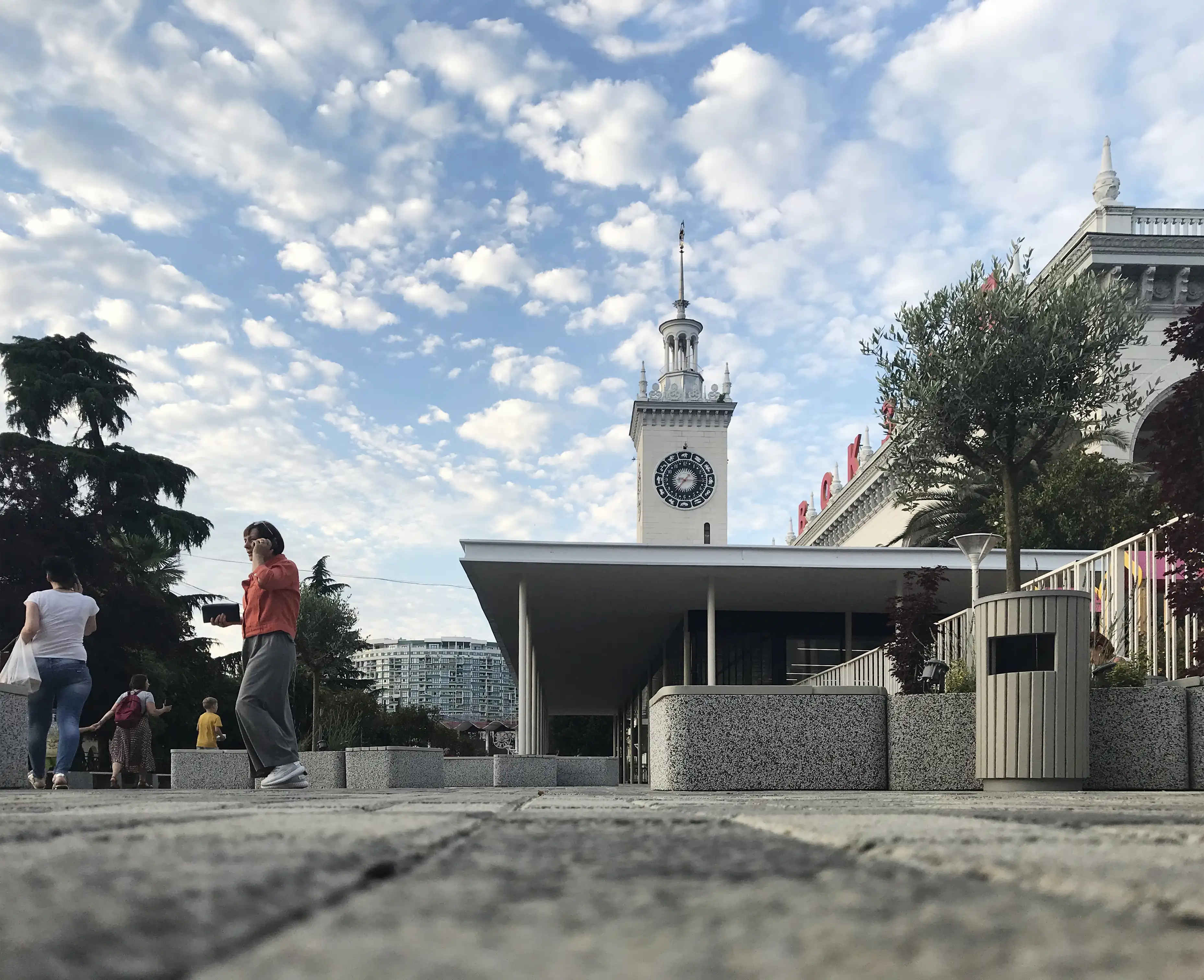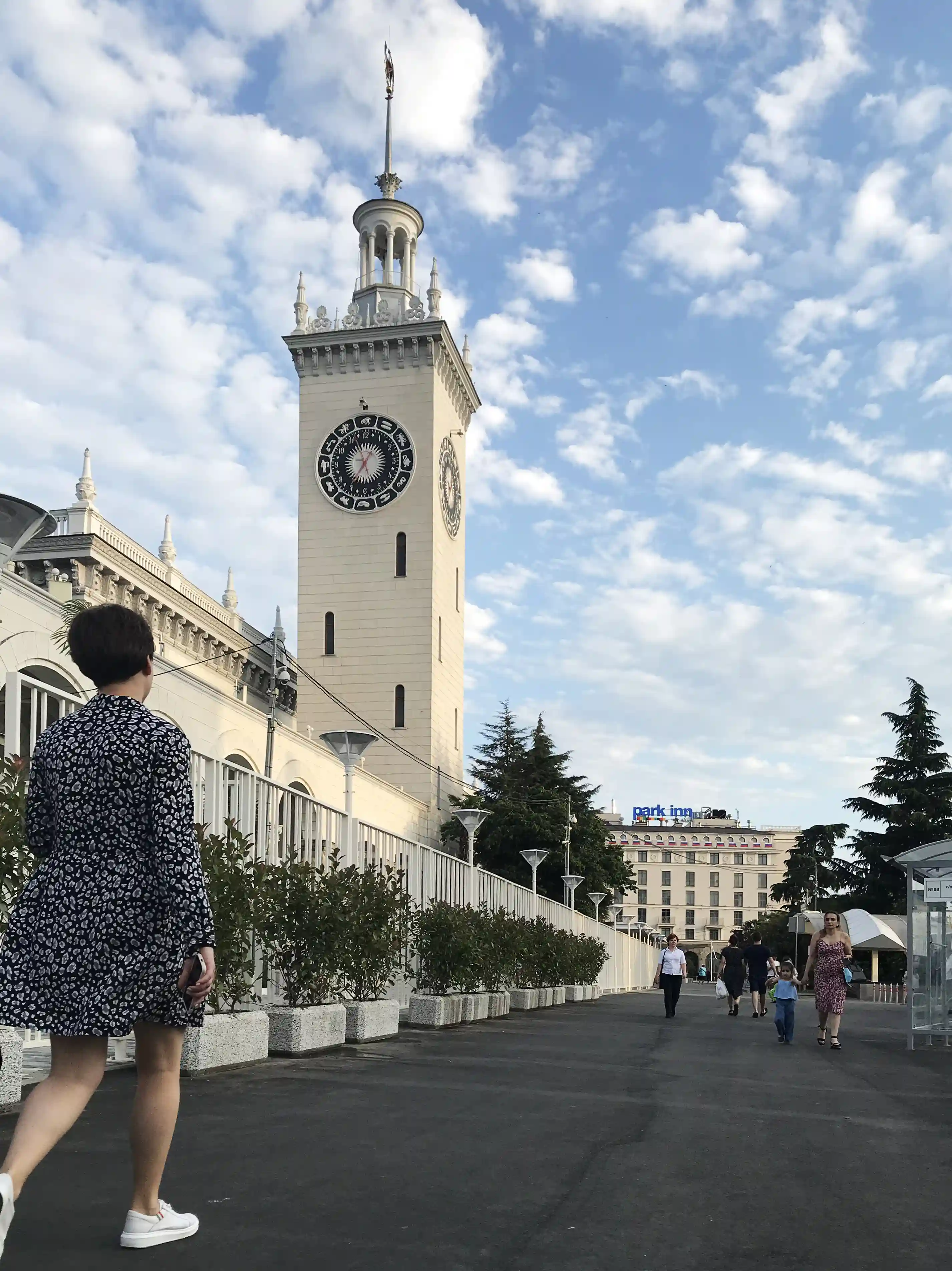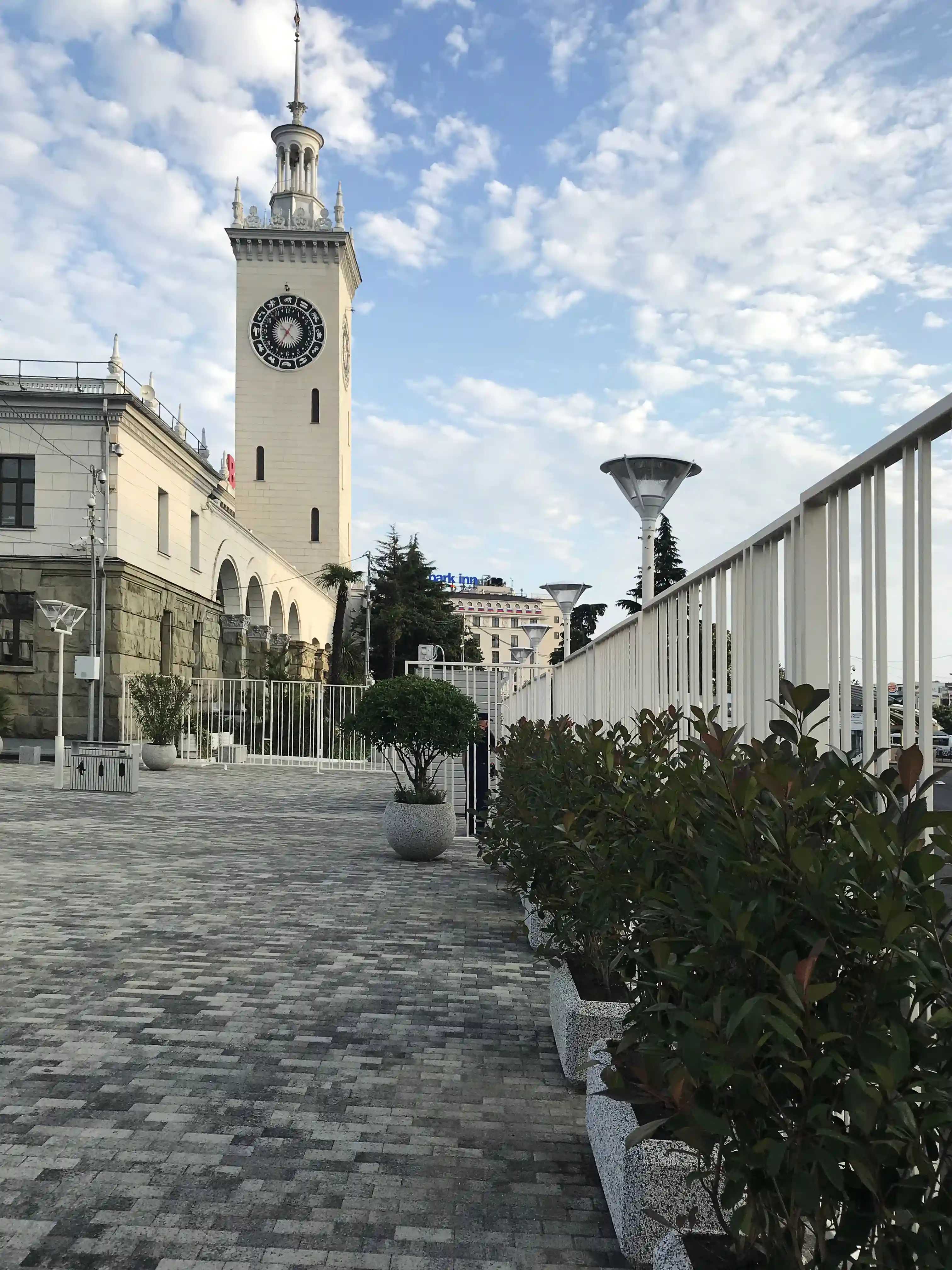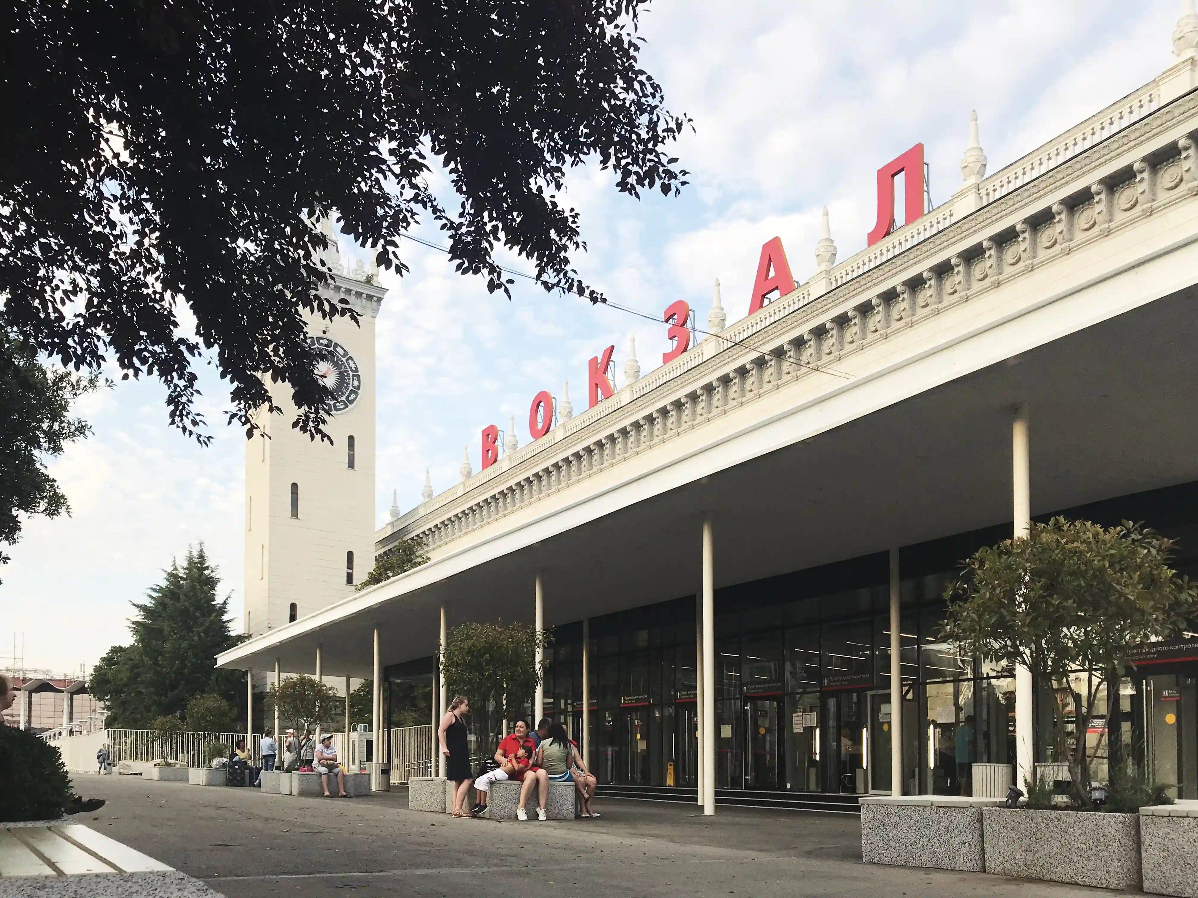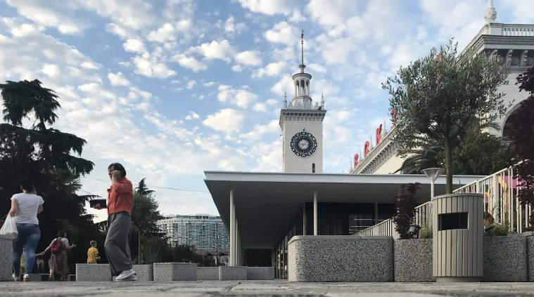 Прилегающая к вокзалу территория получила новый современный облик. На привокзальной площади в Сочи для жителей и гостей города обустроена комфортная зона отдыха, автомобильные парковки общей вместимостью более 100 автомобилей и дополнительная полоса для общественного транспорта с новыми автобусными остановками.